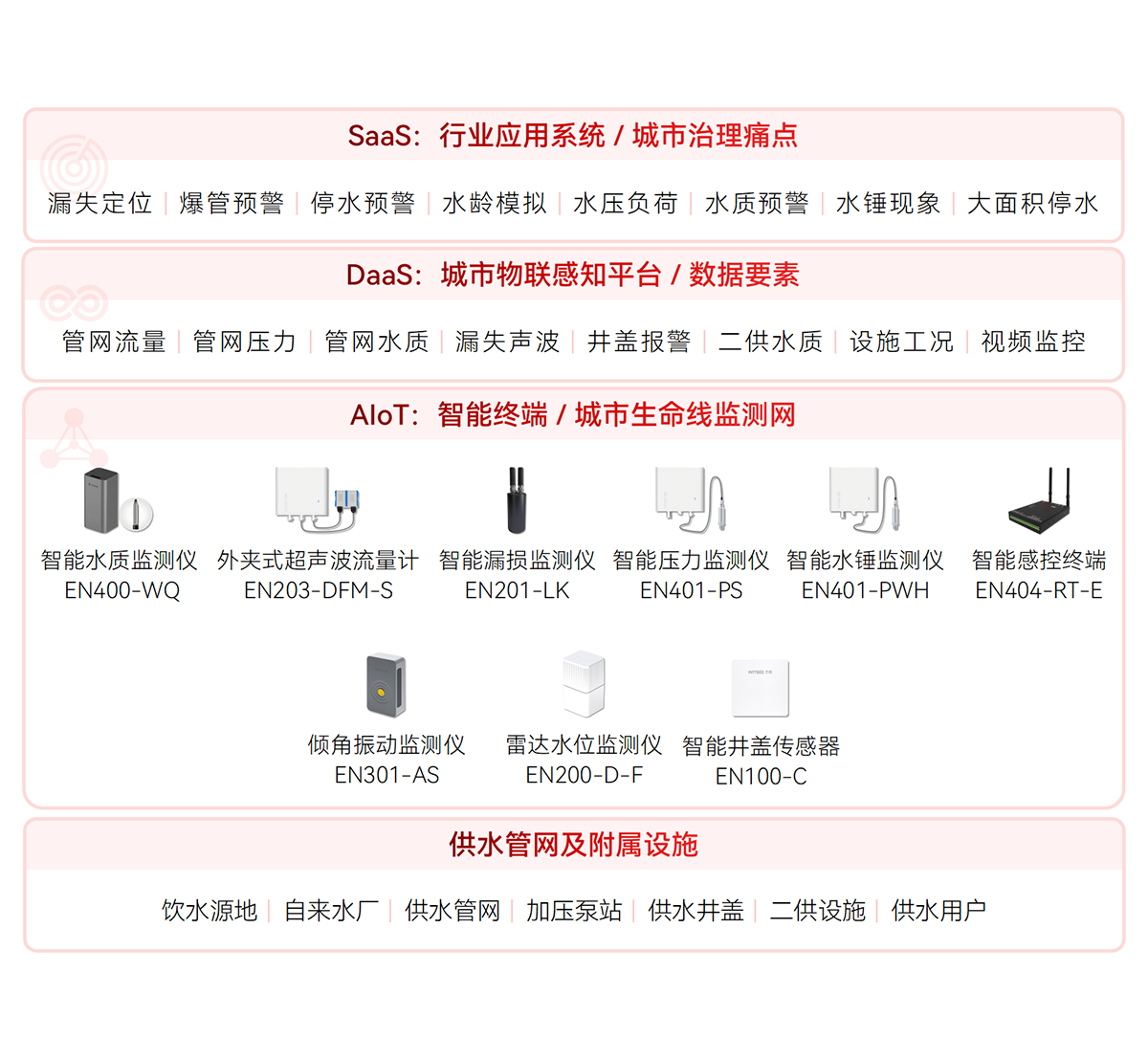 對供水管網(wǎng)設(shè)施及水質(zhì)提供實時監(jiān)測,通過各類智能監(jiān)測終端保障供水壓力平衡、流量穩(wěn)定和供水安全,及時發(fā)現(xiàn)爆管并預警,避免大面積城市停水事故發(fā)生,為管網(wǎng)爆管預警分析、用水趨勢分析和泄漏量預警分析提供數(shù)據(jù)支撐。