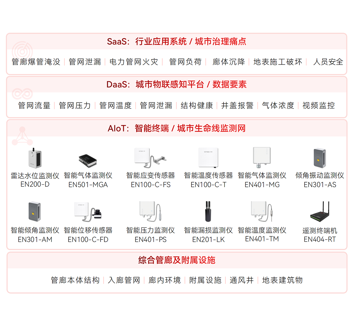 對管廊艙內(nèi)結(jié)構(gòu)的沉降、傾斜、震動和裂縫,管廊地表結(jié)構(gòu)沉降、位移和傾斜,管廊艙內(nèi)硫化氫氣體、甲烷氣體、溫濕度和氧氣,集水坑水位和孔口蓋板等數(shù)據(jù)實時監(jiān)測,同時接入視頻圖像,為管線風險監(jiān)測預警分析、廊內(nèi)環(huán)境及附屬設(shè)施監(jiān)測預警分析和管廊綜合監(jiān)測預警分析提供數(shù)據(jù)支撐。
